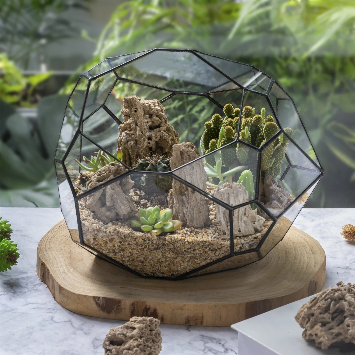 Handmade Black House Shape Glass Geometric Terrarium Wth Lid For Succulent Fern Moss Airplants