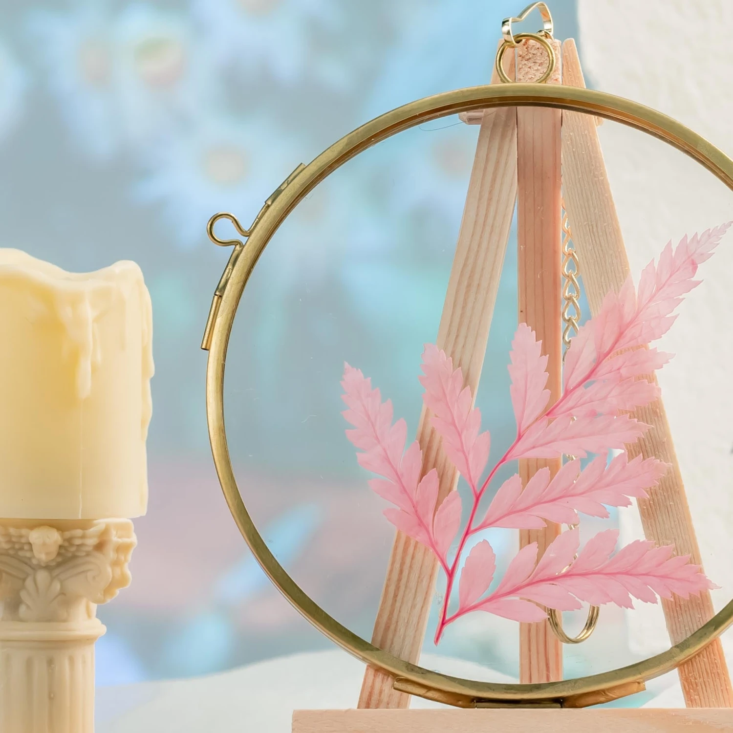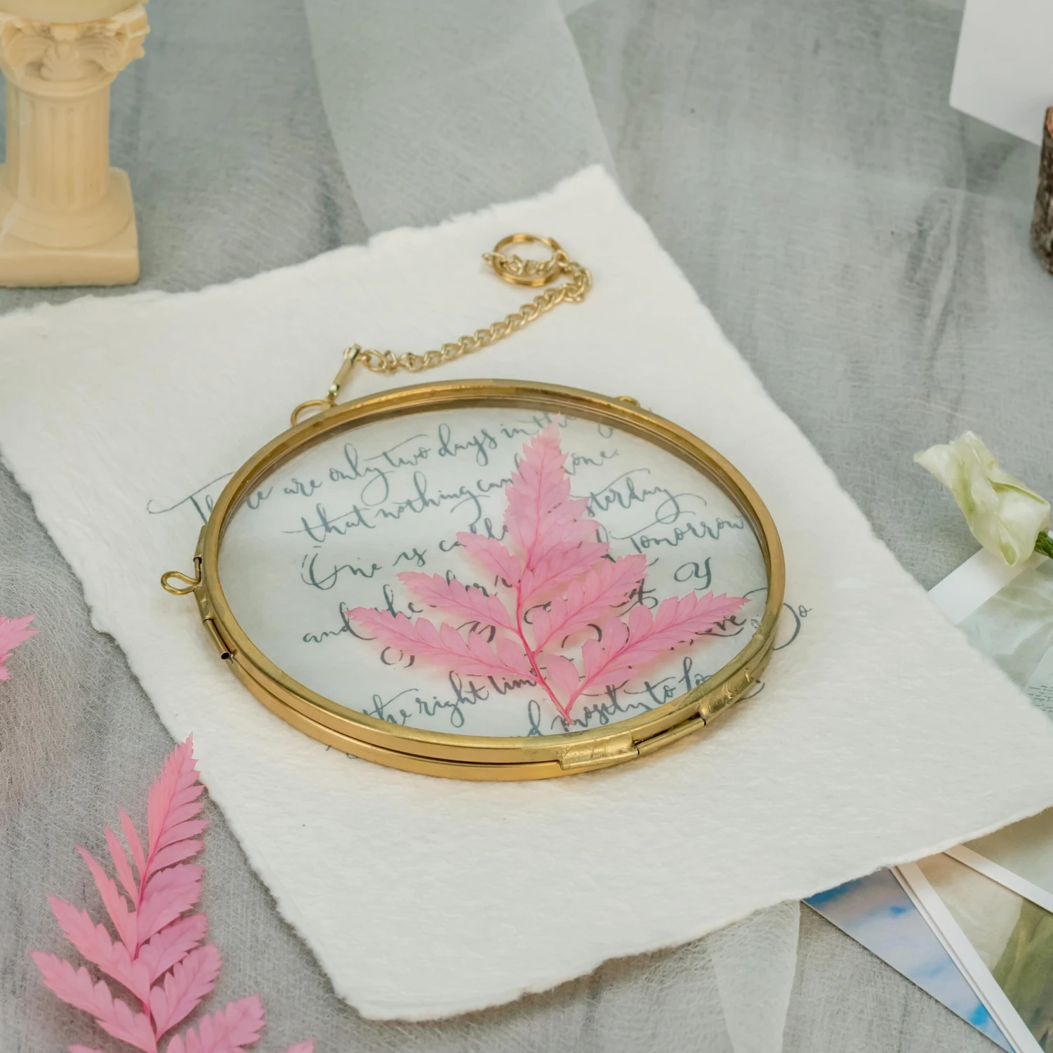 NCYP Wall Hanging Round 5″ 4.3″ Herbarium Brass Glass Frame For Pressed Flowers, Dried Flowers, Poster, Double Glass, Floating Frame